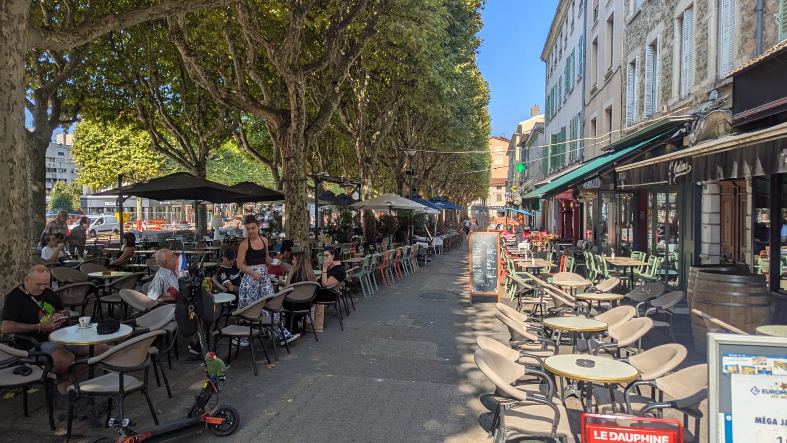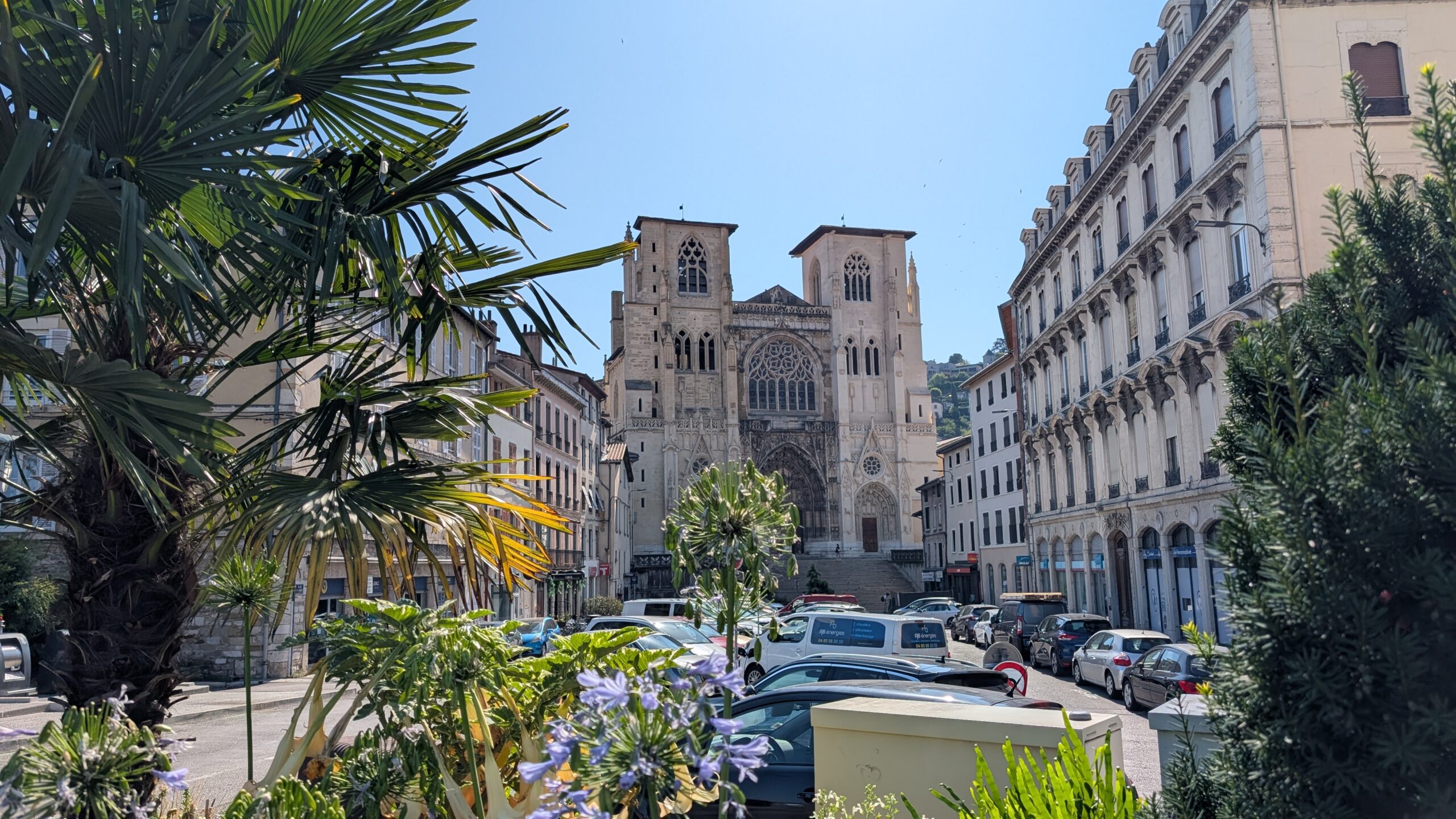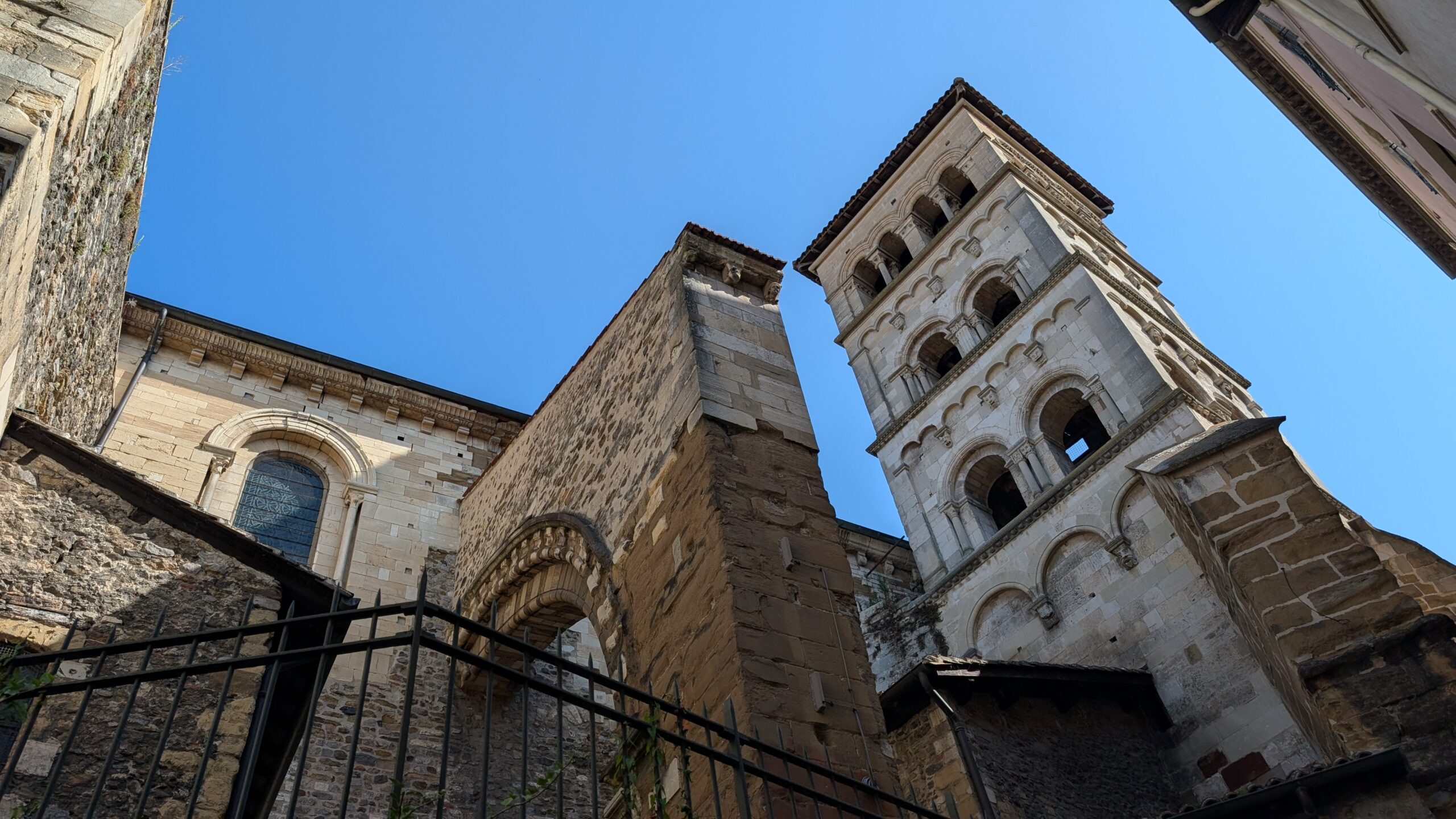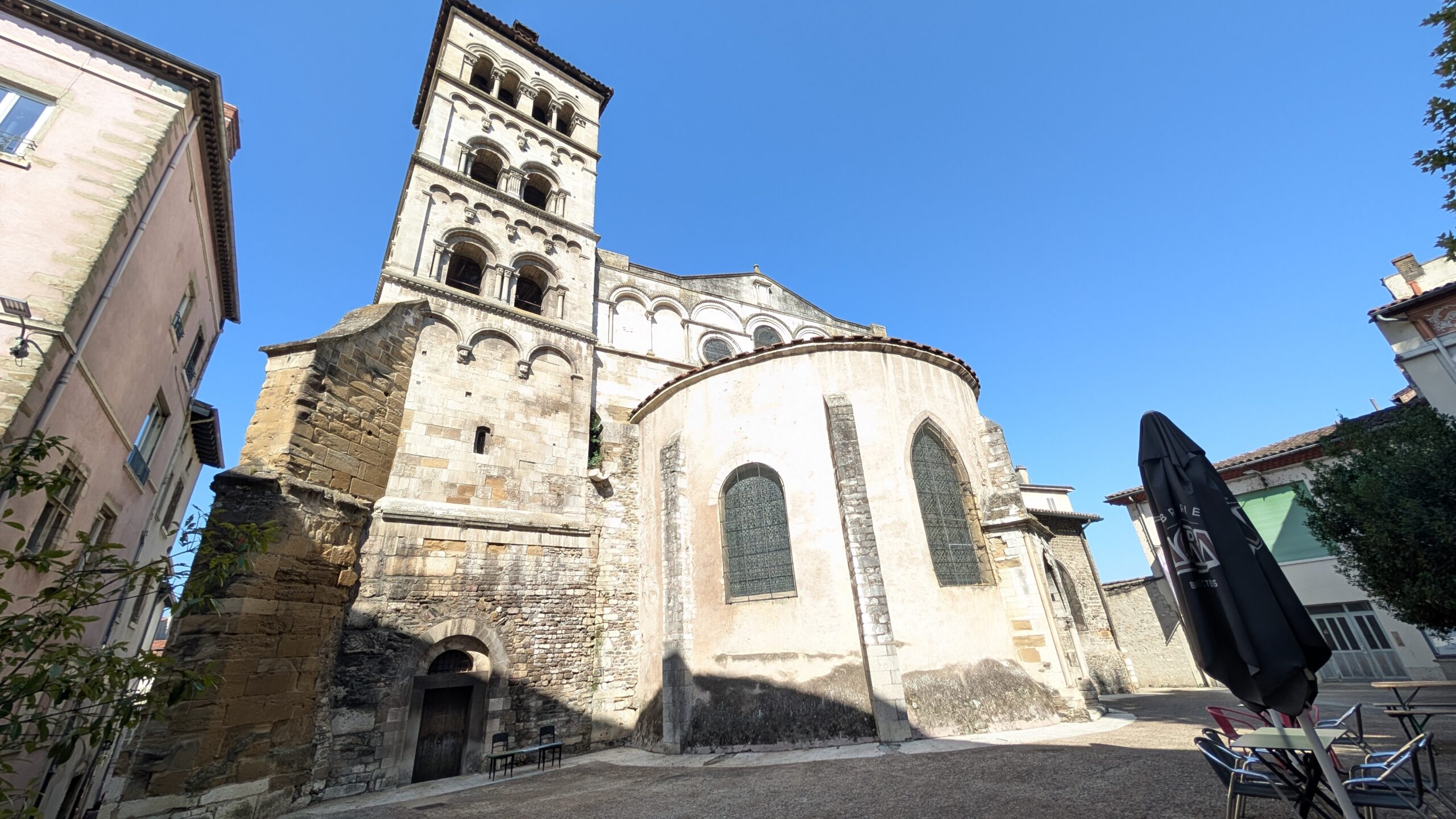 Heute Morgen sind wir dann aufgebrochen, um einen Spaziergang in Vienne zu unternehmen. Die Kleinstadt hat mit seiner über 2.000 Jahre alten Geschichte ein römisches Erbe: von Julius Cäsar im Jahr 47 v. Chr. wurde es zur römischen Kolonie („Colonia Iulia Viennensis“), später wurde es zu einer der bedeutendsten Städte im römischen Gallien, Sitz eines römischen Gouverneurs und Verwaltungszentrum. Es gibt ein römisches Theater (ca. 10.000 Plätze – eines der größten römischen Theater nördlich der Alpen), den Tempel von Augustus und Livia aus dem 1. Jahrhundert n. Chr. (einer der besterhaltenen römischen Tempel Frankreichs) und etliche weitere Reste aus der römischen Bauzeit.