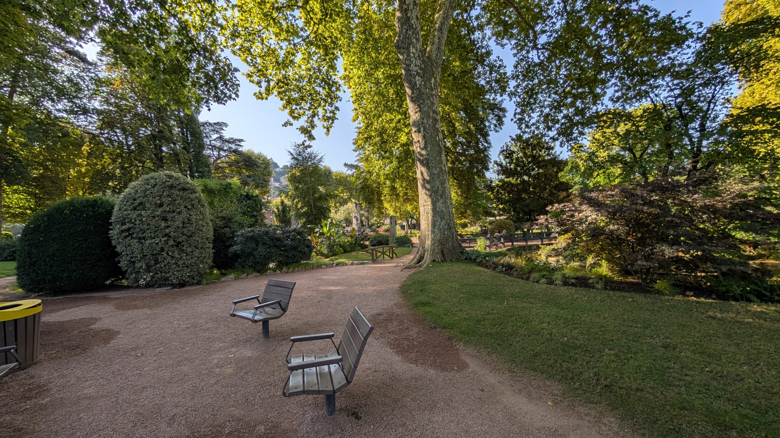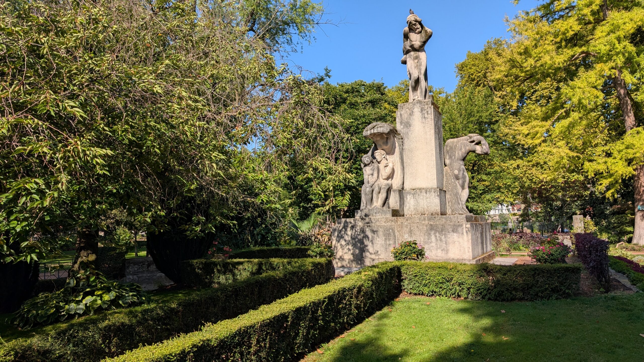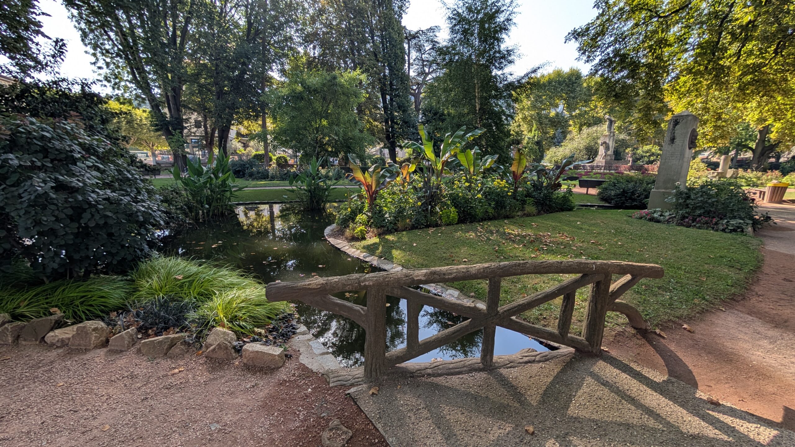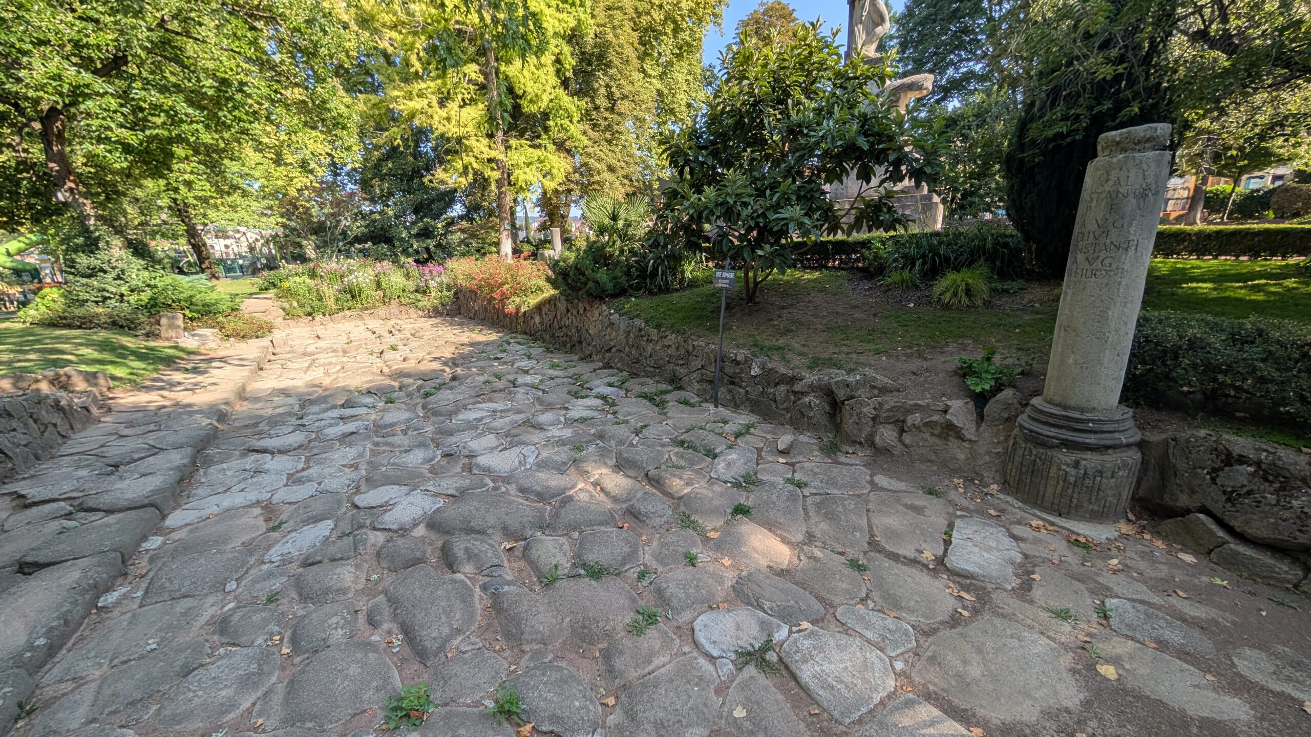 Wir starten unseren Spaziergang in einer schönen kleinen Parkanlage, wo unter anderem auch eine 1895 entdeckte römische Straße eingebettet wurde.
