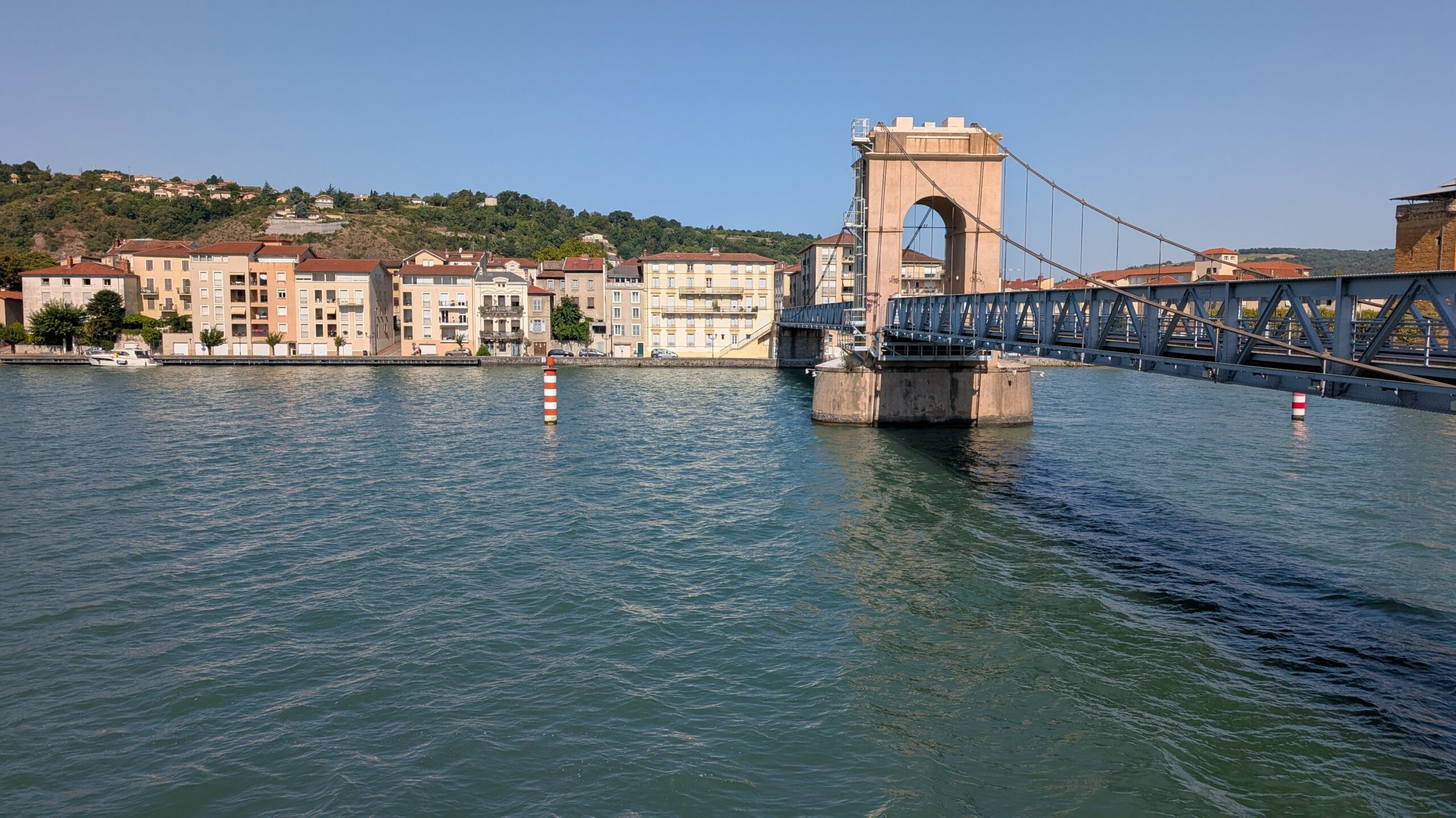 Die Nacht war dieses Mal nicht gerade ruhig, da an dem Kai, an dem wir mitten im Ort angelegt hatten, immer wieder starke Wellen beim Passieren von Schiffen unser Boot ins Schaukeln brachten, nachdem die Ufer der Rhone jeweils mit Mauern befestigt sind und die Wellen deshalb immer wieder reflektieren anstatt auslaufen zu lassen.