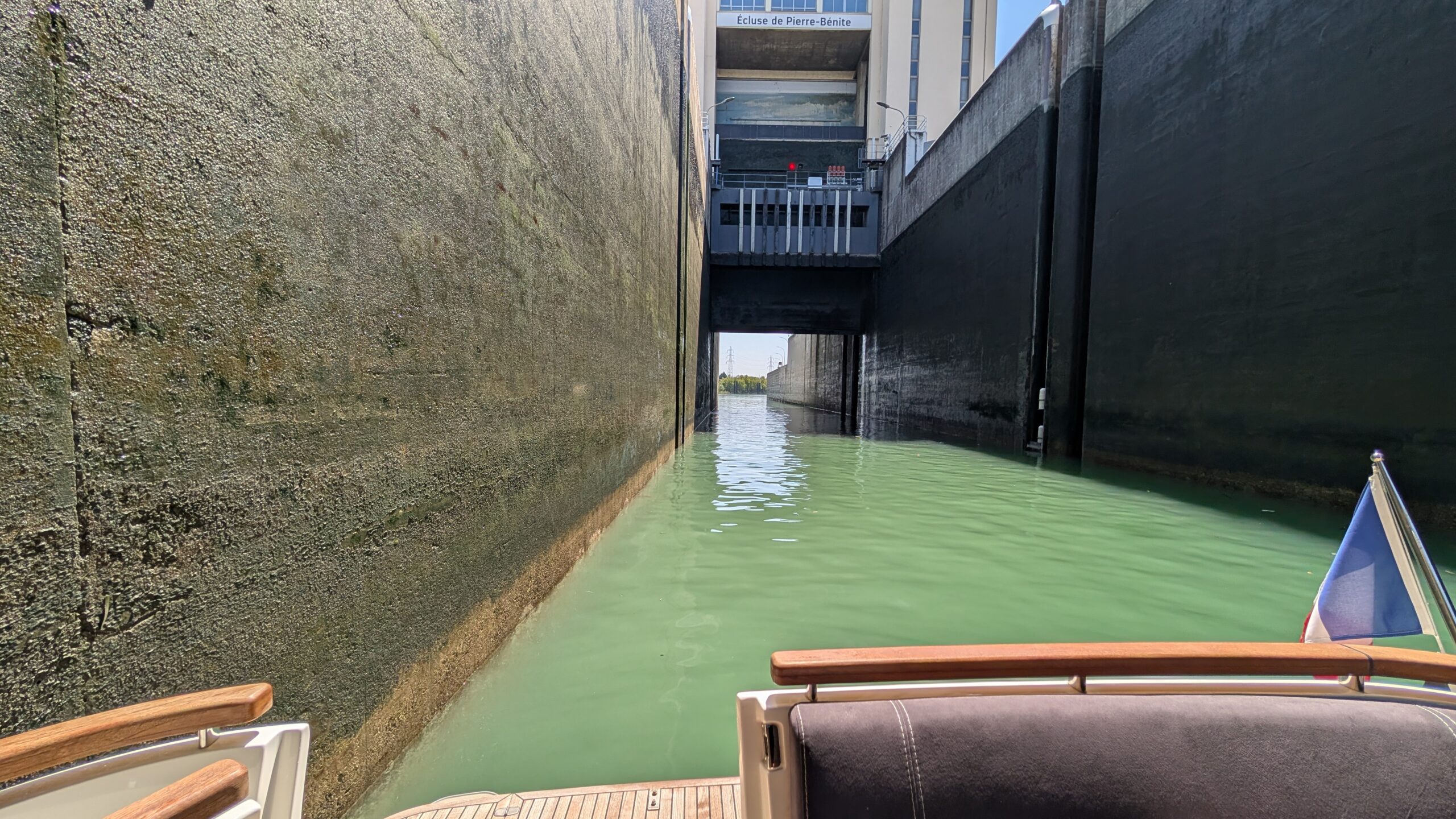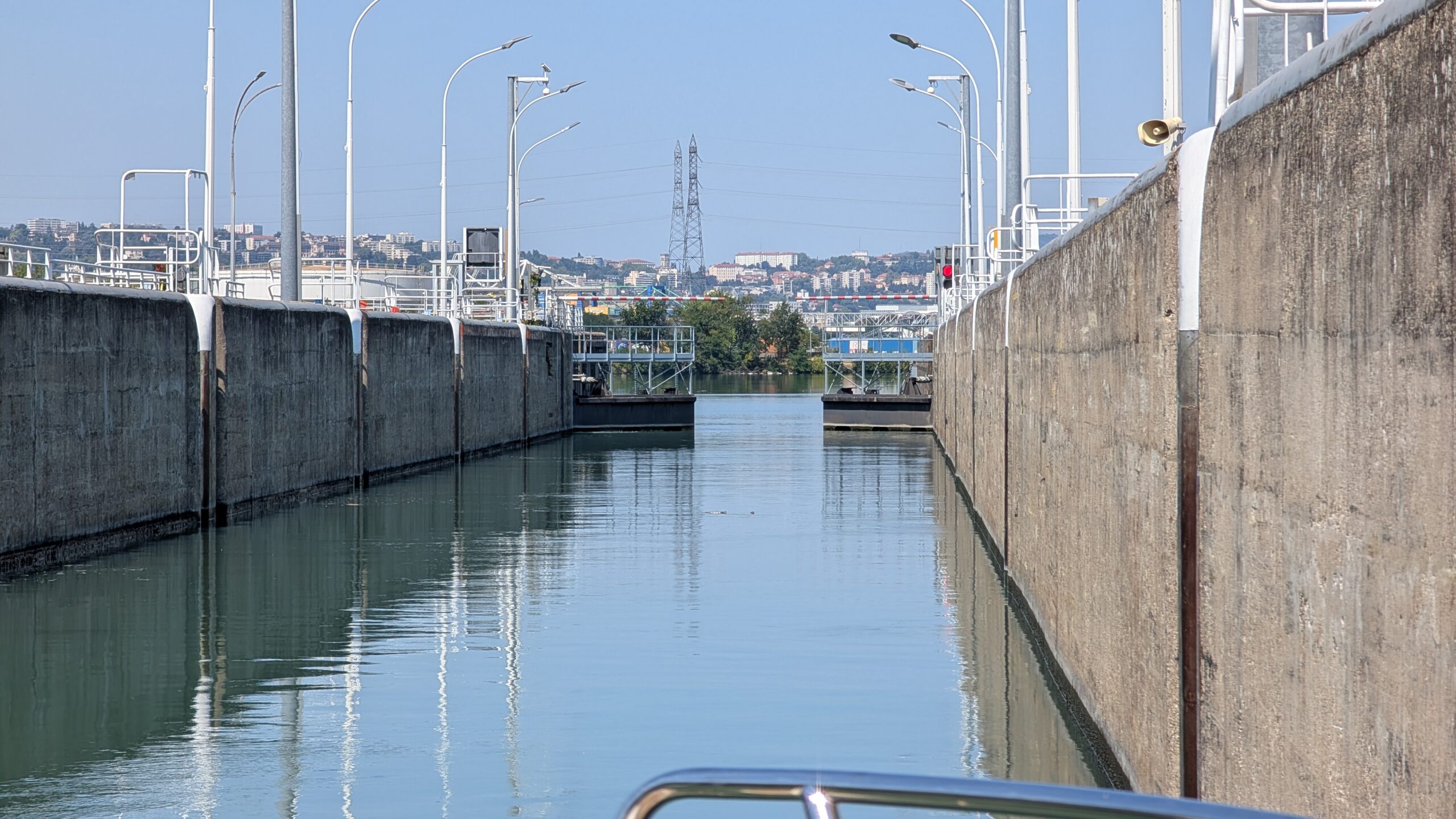 Die Schleuse „Piere-Bénite“ ist nach 320 km die letzte von 13 Schleusen auf der Rhone – und öffnet die Tore mit einem ersten Blick auf Lyon.