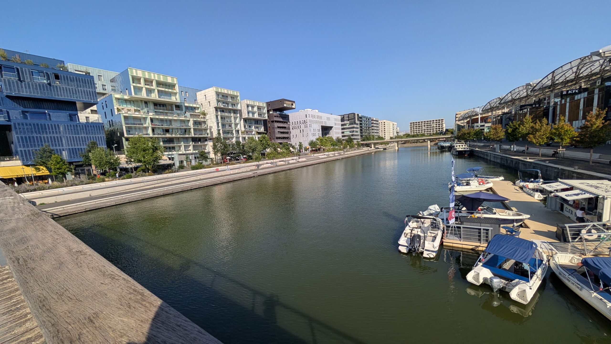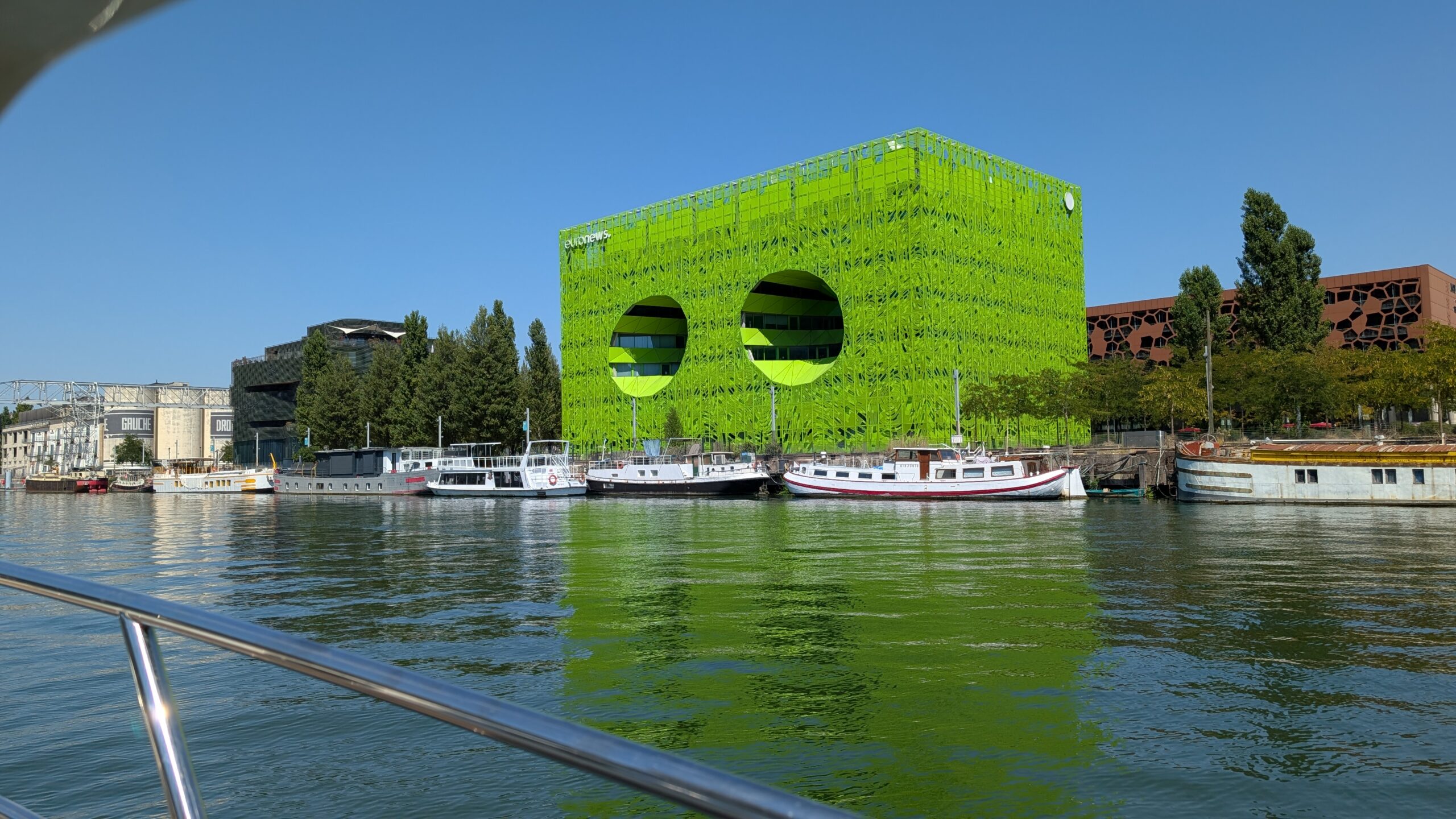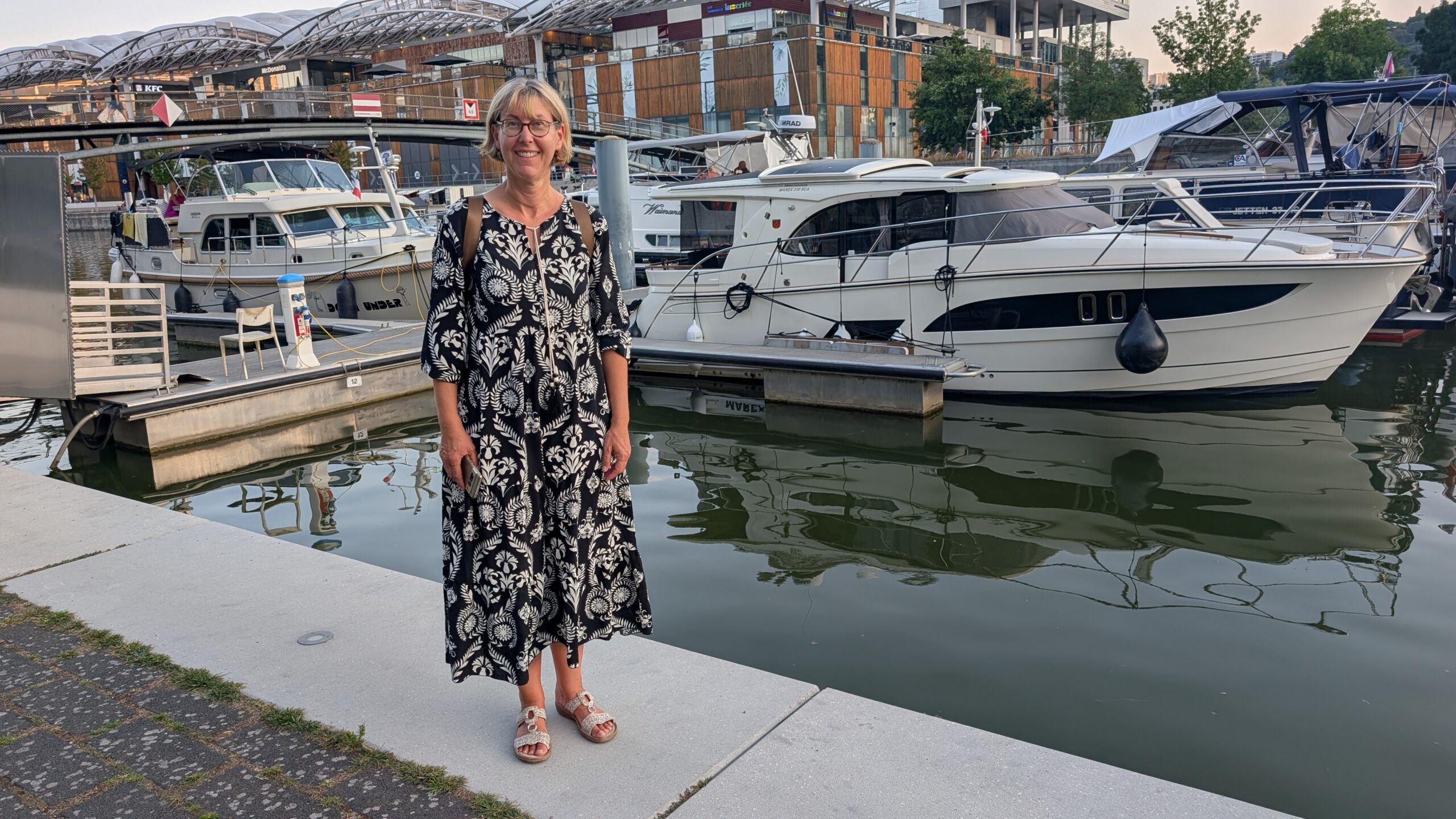 Im kleinen Stadthafen „Halte Fluviale Lyon Confluence“ bleiben wir für die kommende Nacht – und warten auf unsere Begleitung, die kurz vor Mitternacht nach einem Flug aus Nürnberg ankommen sollte.